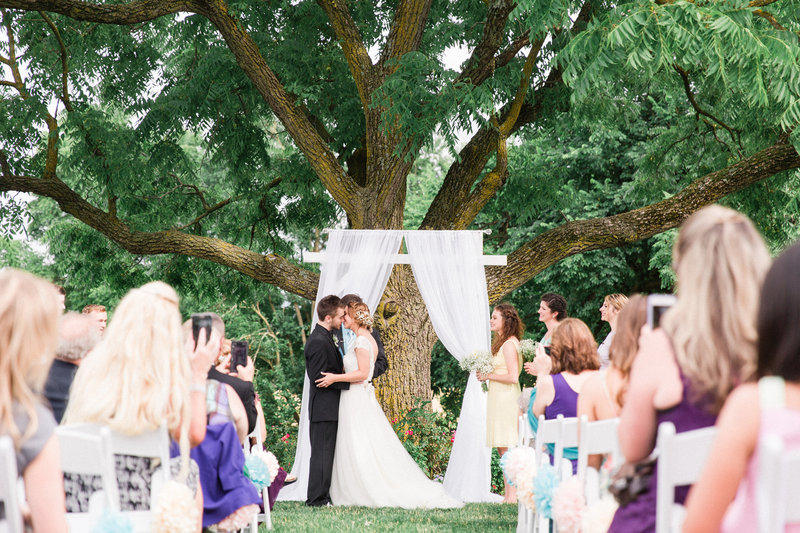 Family photos most often happen right at the ceremony space. We may do it under the arbor if the lighting is nice or we may shift you into a spot with better lighting. If we're experiencing some rain, we may take photos on patio out front of the house. Either way, we'll put you in the very best spot for lighting.